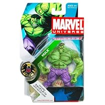 Marvel 78692 Review: Marvel Universe 3 3/4" Series 2 Action Figure Hulk (Green). This hulk figure is okay in my opinion. The color is a litte dull and the face is too contemporary in my opinion. However, the cool thing is that his left hand can hold one of the smaller characters around the waist. That adds some extra fun to the figure, I think, for my kids. I think classic hulk looks alot better, though. You can get the green classic hulk in the Secret Wars comic pack; that Hulk is painted with a brighter green and ... Full reviews at amazon »